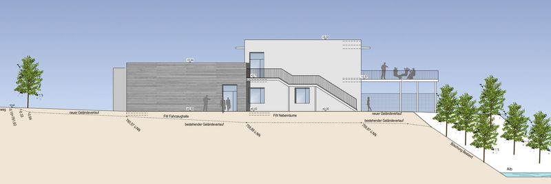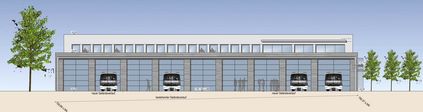 Des Weiteren sind im EG großzügige Werkstätten für Atemschutz und Geräte angeordnet. Es wird eine moderne Schlauchwaschanlage eingerichtet.