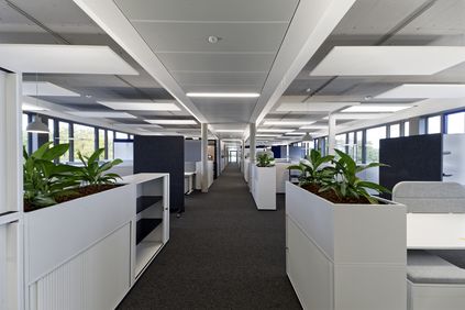 Die oberen 5 Geschosse beherbergen die Büroflächen und zugehörige Nebenflächen.