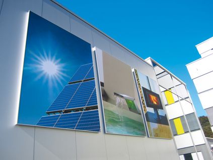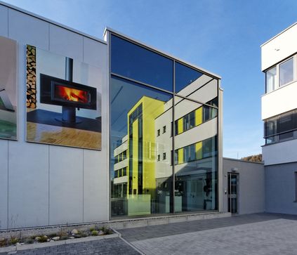 Energiezentrale mit großflächiger Schaufenster-Verglasung als Blickfang und aktives Demonstrationsobjekt