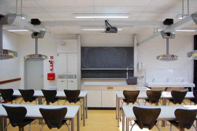 An die Arbeitsplätze wurden jeweils Strom, Gas und eine Anschlussstelle für die EDV herangeführt, so dass die Schüler auch an ihren Plätzen Experimente durchführen und auch praktisch arbeiten können.