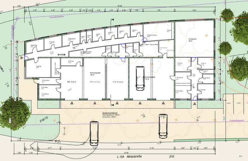 In Richtung Albstalstraße befindet sich die Ausfahrt für die Rettungsfahrzeuge und die Fahrzeuge des Ortsvereins.
