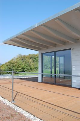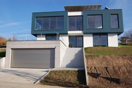 Der Entwurf reagiert auf die vorhandene Hanglage durch intelligente Grundrissgliederung und -ausrichtung.